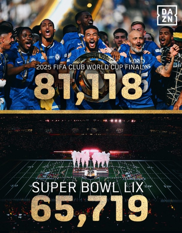 2025年世俱杯落下帷幕,切尔西决赛3-0击败巴黎夺冠,本场比赛在新泽西大都会人寿体育场进行,观众人数为81118人,而这座体育场的容量为82500人。
